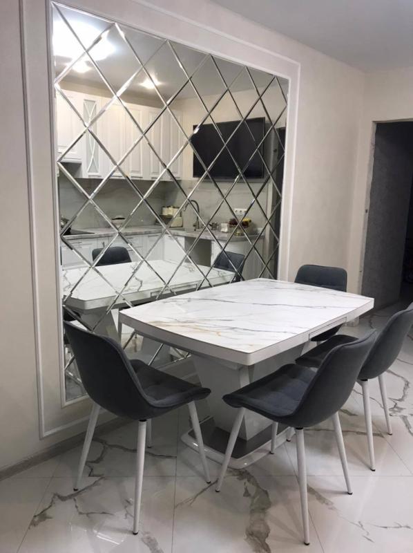 Использована зеркальная квадратная плитка с фацетом.